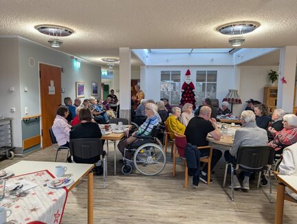 Im geschmückten Speisesaal feierten wir mit unsere Bewohnern und Bewohnerinnen.